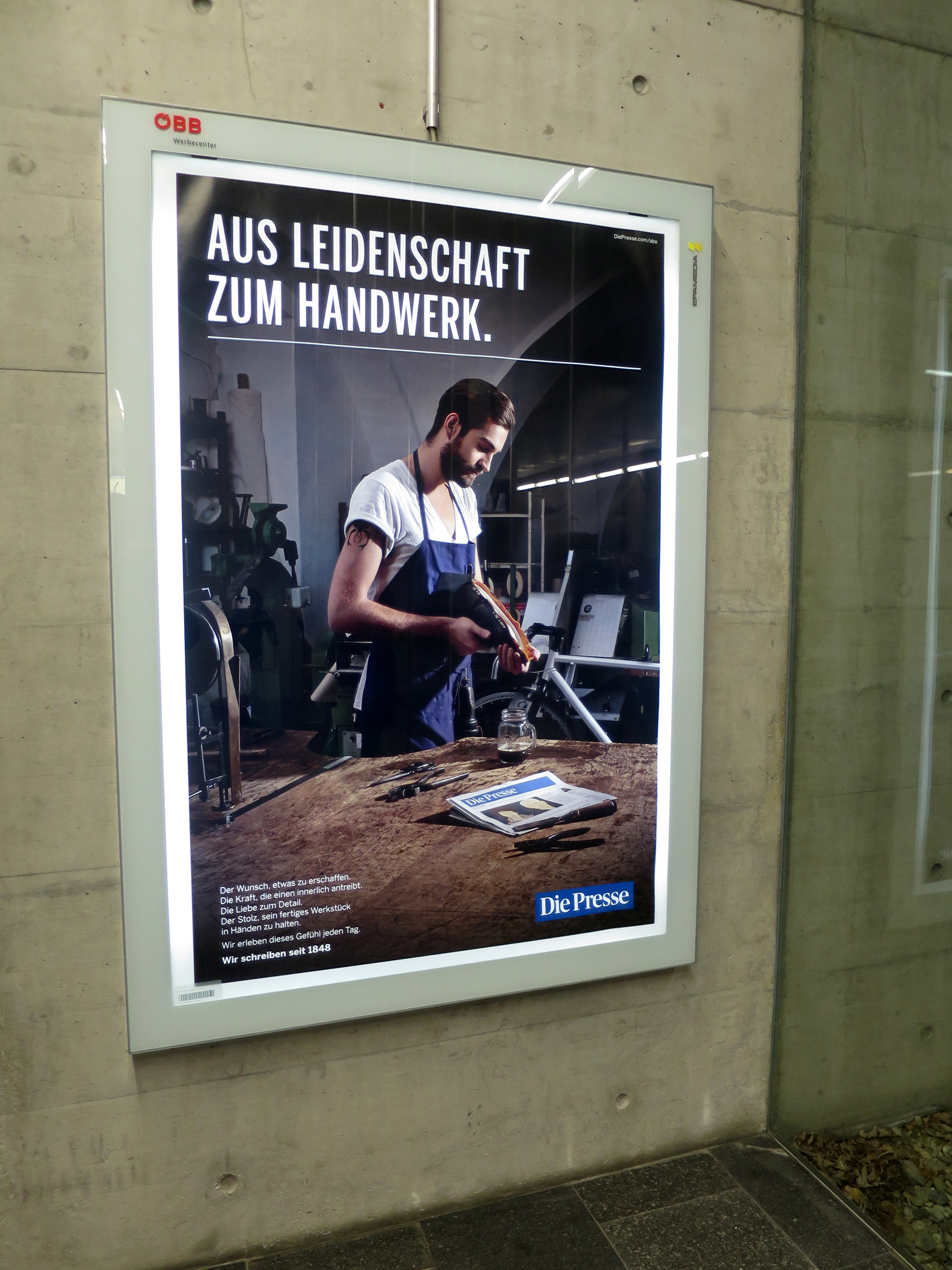 After the first campaign to establish Die Presse newspaper with the claim 'Writing since 1848', the second phase was to relate the paper to the world of Craft.