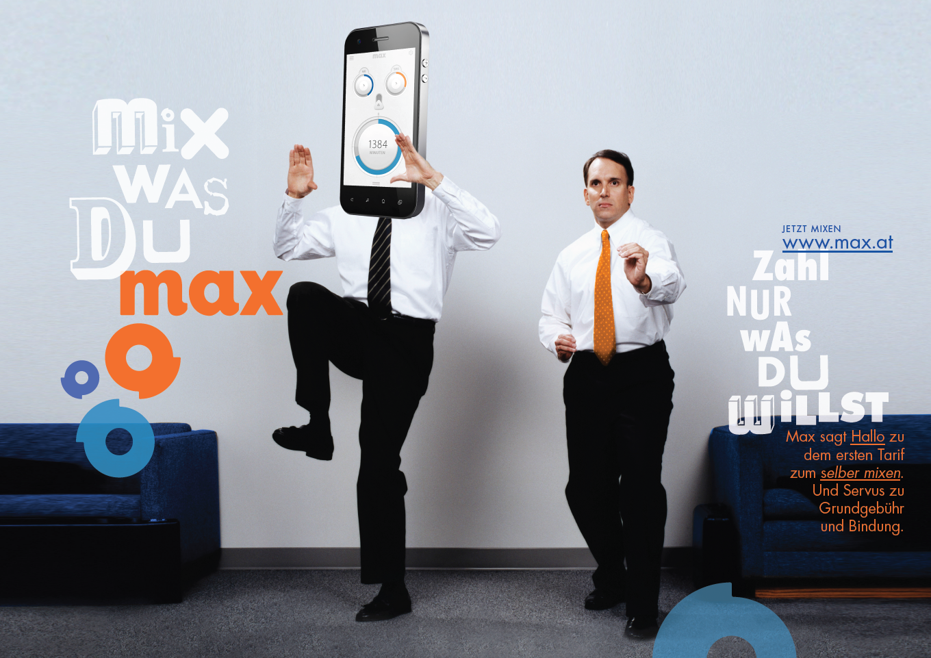 Design of the brand, advertising and app for a fun mobile phone network that let you Mix what you Max, and pay what you want.