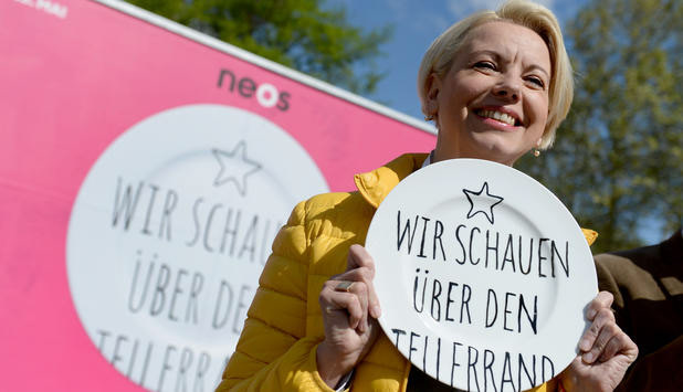 A campaign for the Neos political party which encourages people to look over the edge of their plate; an Austrian saying which roughly translates as Look outside your own backyard.