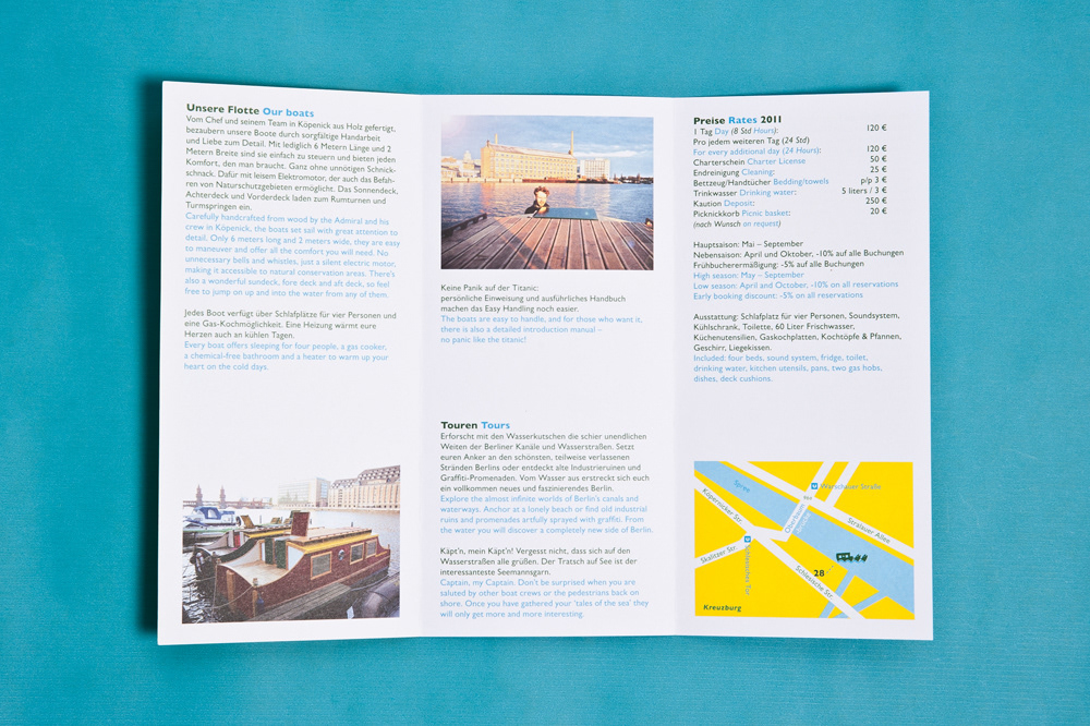 Identity design and promotion for a company that rents out boats on the river Spree in Berlin.